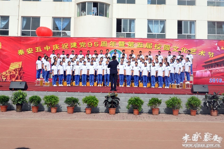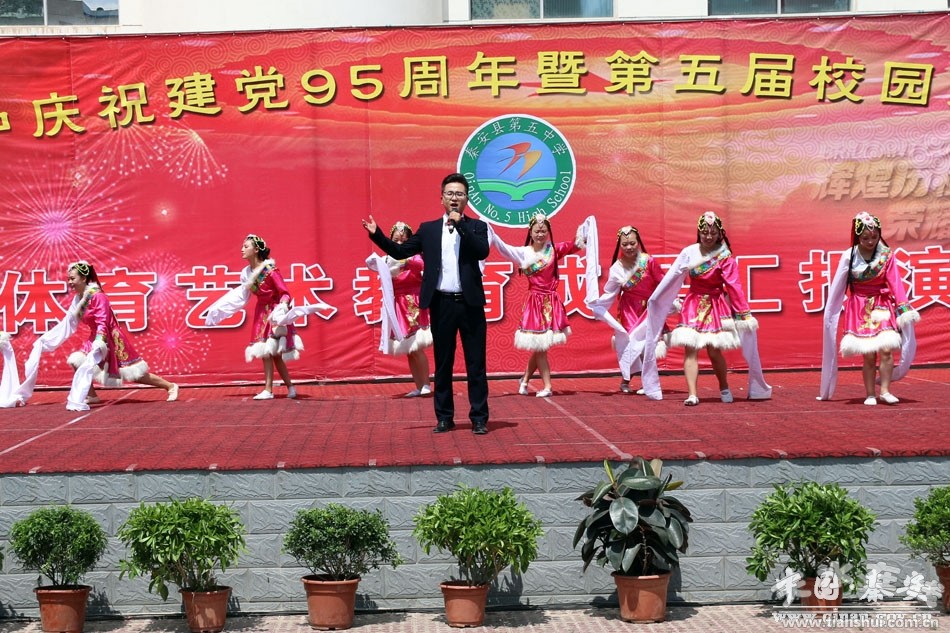 歡歌慶節(jié)日,笑語抒情懷。6月30日,秦安縣第五中學慶祝建黨95周年暨第五屆校園文化藝術節(jié)舉行。縣委書記王東紅,縣人大常委會主任郭海軍,縣委副書記、縣長程江芬,縣委常委、縣委宣傳部長徐東明,縣人大常委會副主任張來祿,縣政府副縣長于劍鋒,縣政協(xié)副主席李育新、王小平,中國書法家協(xié)會會員隴東學院書法研究所副研究員孫亞利,中國硬筆書法協(xié)會會員隴東學院書法研究所所長副研究員李建祥,隴東學院美術學院講師、甘肅省美協(xié)會會員劉雷及來自縣教體局、各高中、初中、城區(qū)小學和幼兒園的負責人,部分學生家長代表參加了活動。