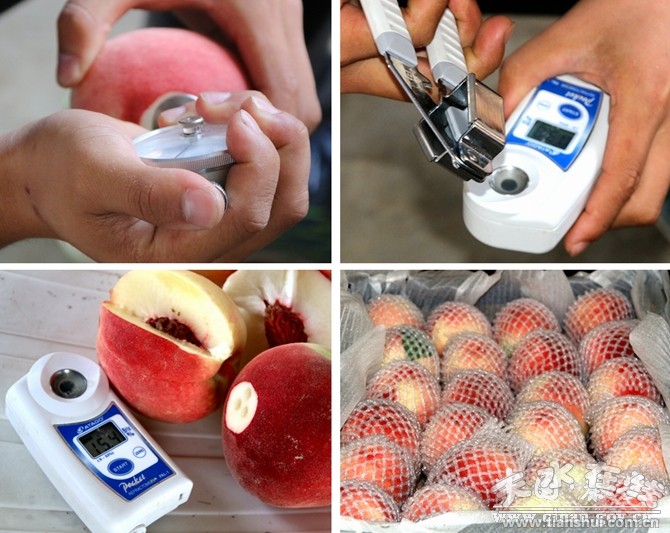 。ìF(xiàn)場(chǎng)檢測(cè)秦安蜜桃的糖度和硬度)