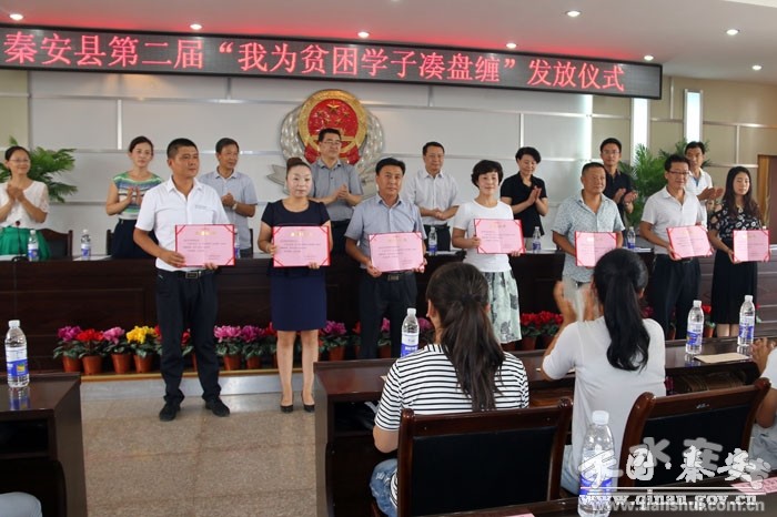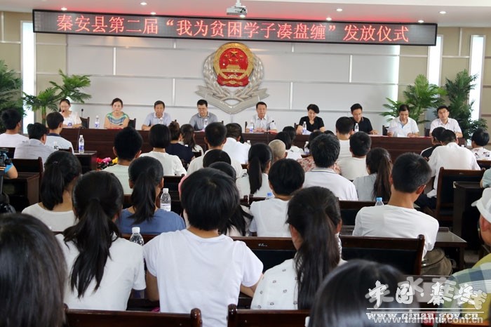 8月18日,由共青團(tuán)秦安縣委發(fā)起的第二屆“我為貧困學(xué)子湊盤(pán)纏”活動(dòng)舉行發(fā)放儀式,縣委副書(shū)記裴貴軍,縣人大常委會(huì)副主任劉小秦,縣政府副縣長(zhǎng)于劍鋒、畢勝,縣委農(nóng)工部、團(tuán)縣委、縣教體局相關(guān)負(fù)責(zé)人,部分愛(ài)心企業(yè)和愛(ài)心人士代表、公益志愿者、受助學(xué)生共200多人參加了發(fā)放儀式。