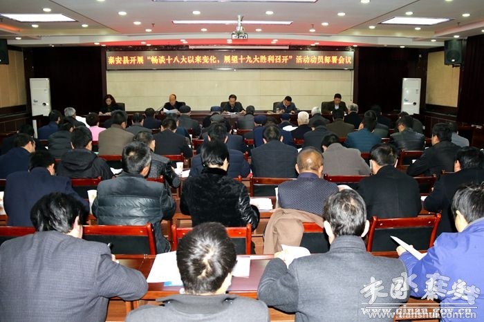 會議宣讀了《秦安縣深入開展“暢談十八大以來變化 展望十九大勝利召開”活動實施方案》、《秦安縣關(guān)于開展“暢談十八大以來變化 展望十九大勝利召開”活動有關(guān)事項的通知》。