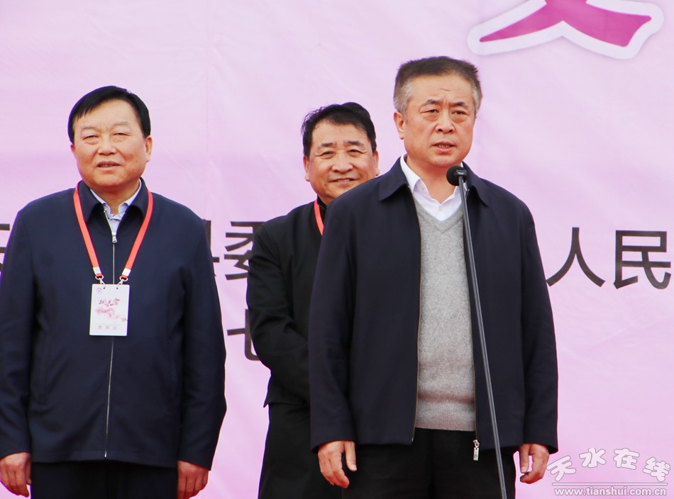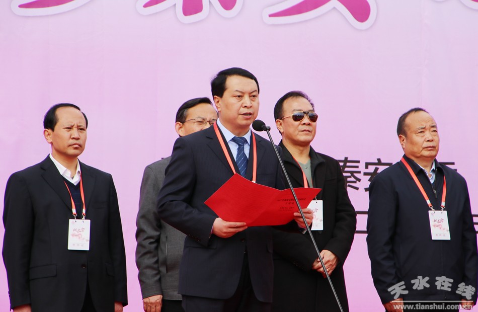 市委常委、秘書長、政法委書記蔣曉強宣布2017年甘肅秦安桃花會開園。