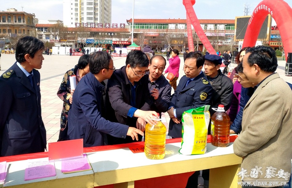 為進一步加大食品藥品監(jiān)管工作宣傳力度,擴大“12331”投訴舉報熱線的公眾知曉率,增強廣大群眾飲食用藥安全意識,激發(fā)公眾參與食品藥品安全監(jiān)管的積極性,3月31日,秦安縣食品藥品監(jiān)督管理局牽頭組織縣工商局、質(zhì)監(jiān)局、教體局、衛(wèi)計局、畜牧局、農(nóng)業(yè)局、執(zhí)法局、工信局、科技局、人保公司等單位在興國文化廣場開展了以“12331,守護食品藥品安全”為主題的食品藥品12331投訴舉報主題宣傳日活動,縣政府副縣長于劍鋒,縣政協(xié)副主席、衛(wèi)計局局長張榮生參加了活動。