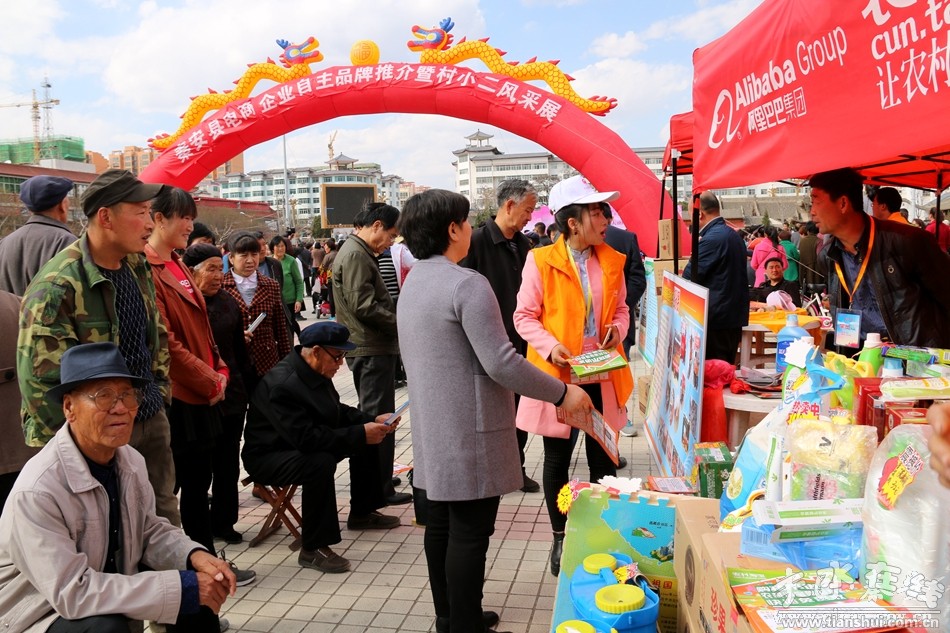3月30日下午,“2017年甘肅秦安桃花會”正式開園,作為開園儀式現場活動之一的“秦安縣電商企業(yè)自主品牌推介暨村小二風采展”也同時進行,展出推介活動吸引了大量市民群眾駐足觀看。