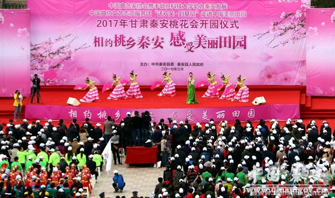 陽春三月,在秦安縣葫蘆河兩岸綿延十公里的山川大地上,數(shù)萬畝桃園桃花綻放,姹紫嫣紅,繁花似錦。遠(yuǎn)遠(yuǎn)望去,一片片桃園如同一幅幅美麗壯觀的風(fēng)景圖畫,把秦安大地裝扮得分外妖嬈,美不勝收。3月30日,“2017年甘肅秦安桃花會”開園儀式在秦安縣興國文化廣場隆重舉行。