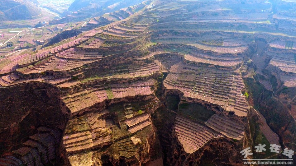 (秦安縣西川鎮(zhèn)李堡村桃園景區(qū) 天水在線4月14日航拍)
