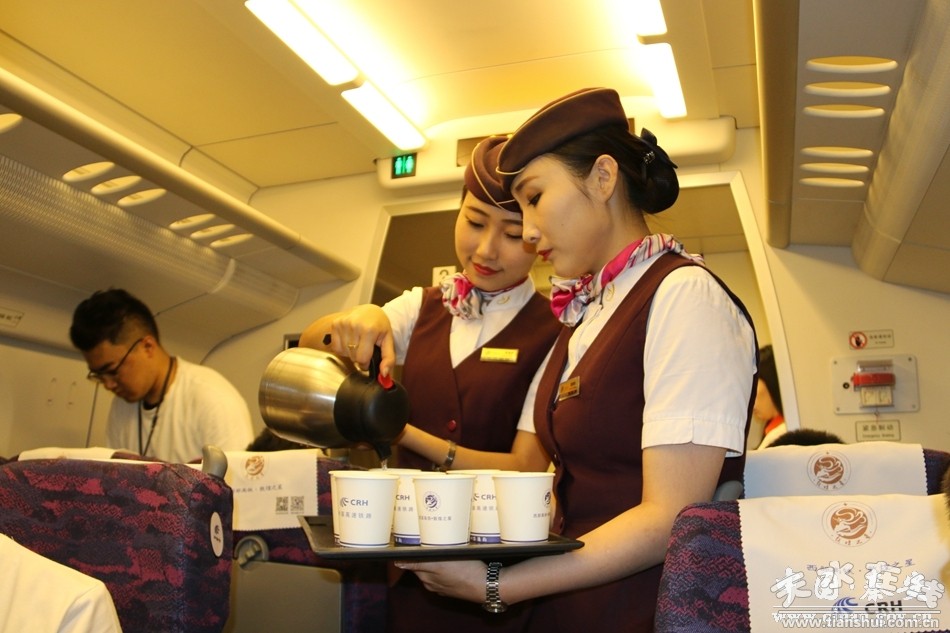。熊嚦藙(wù)員為旅客提供茶水服務(wù))