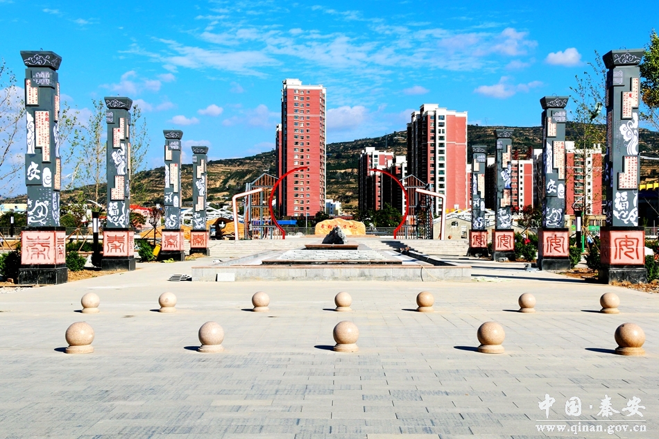 為弘揚(yáng)地方歷史文化,追溯李白與秦安的歷史情緣,彰顯秦安歷史文化精神,打造“李氏文化”品牌。秦安縣委、縣政府籌劃在“寶蘭客!鼻匕舱菊厩皬V場(chǎng)建造了“李白祖居地”石碑。同時(shí),廣場(chǎng)的設(shè)計(jì)建造還立足于“羲里媧鄉(xiāng)”文化元素,采用規(guī)則式與自然式相結(jié)合的手法,中軸由名人題刻、時(shí)鐘花壇、主題雕塑與音樂(lè)旱噴廣場(chǎng)、舞美射燈舞臺(tái)構(gòu)成,兩側(cè)八根藝術(shù)柱廊象征素有“羲里媧鄉(xiāng)”之稱的秦安歷史文化八景。整個(gè)主體貌似大鵬展翅,通過(guò)地面浮雕和圖騰柱等建筑,彰顯秦安深厚的文化積淀和悠久的歷史傳承,全方位展示“古成紀(jì)、新秦安”的大美形象。