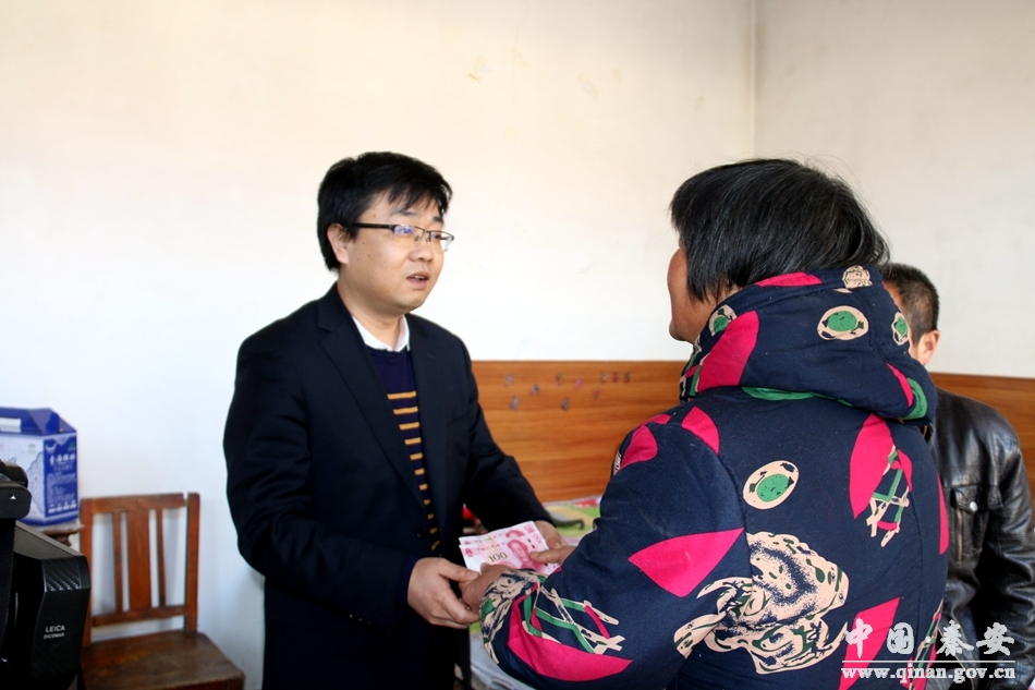 2017年10月2日,李弘君放棄節(jié)假日與家人團(tuán)聚的機(jī)會(huì),自籌資金,購(gòu)買(mǎi)部分禮品,上門(mén)慰問(wèn)葉堡鎮(zhèn)葉堡村董長(zhǎng)大家中,妻子兒子身患重疾,前期的治療以及后續(xù)的維護(hù)費(fèi)用,讓本就不寬裕的家庭雪上加霜,對(duì)于黨和政府出臺(tái)的保險(xiǎn)新政,以及中國(guó)人壽秦安支公司及時(shí)的理賠金萬(wàn)分感激,他緊緊握著李弘君的手千言萬(wàn)語(yǔ)一句話(huà),“感謝黨和政府,感謝保險(xiǎn)公司!”