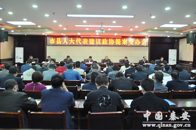 3月15日,秦安縣召開市縣人大代表建議和政協(xié)提案交辦會,全面總結(jié)2017年“兩案”辦理情況,全面安排部署2018年建議提案交辦工作。縣委常委、常務(wù)副縣長王彥軍,縣人大常委會副主任楊尚武,縣政協(xié)副主席路福太出席會議并講話,縣人大辦、政府辦、政協(xié)辦、人大人事代表工委、政協(xié)提案委及各鎮(zhèn)、各承辦單位負(fù)責(zé)人,共計70多人參加了會議。