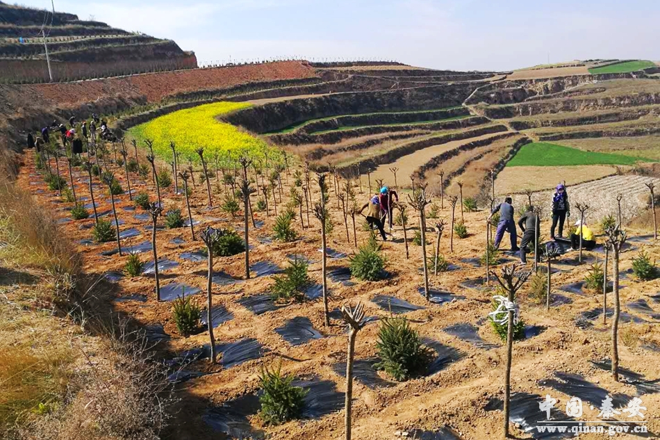 王鋪鎮(zhèn)造林綠化,正在如火如荼地進(jìn)行著。一個(gè)個(gè)培土覆膜的隊(duì)伍,一個(gè)個(gè)揮汗如雨的身影,一棵棵等待檢閱的樹苗正在風(fēng)光旖旎的王鋪梁延伸。