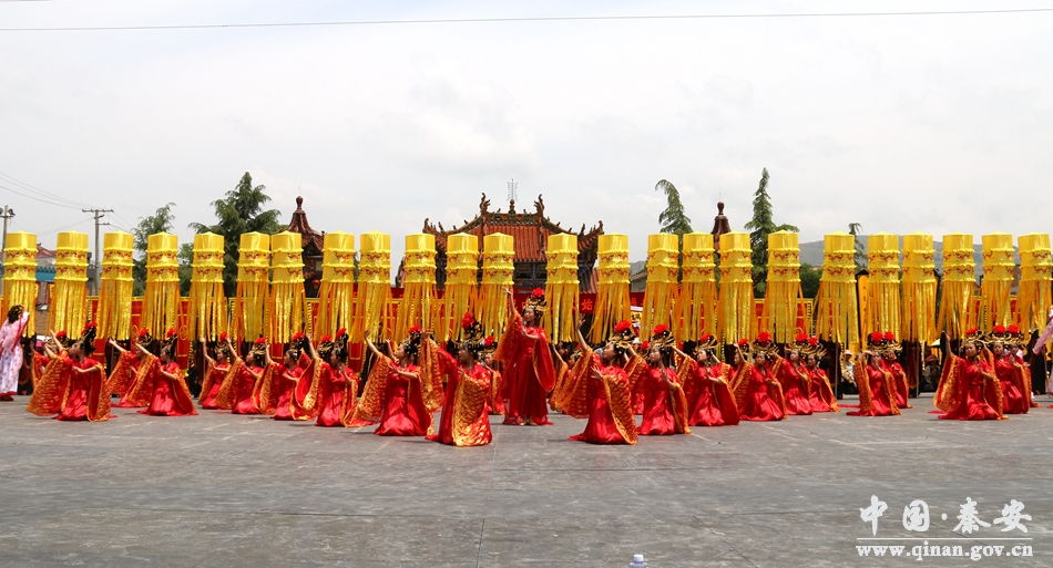 6月19日,秦安縣2018(戊戌)年祭祀中華人文始祖女媧典禮在隴城鎮(zhèn)女媧祭祀廣場進行彩排。原甘肅省軍區(qū)副政委、天水女媧文化研究會名譽會長楊耀春,縣政協(xié)主席楊仁義,縣委常委、宣傳部長徐東明,縣政府副縣長于劍鋒等參加彩排活動,并對祭祀典禮的各項活動作了指導。當天,所有的工作人員及演職人員全部到位,彩排嚴格按照祭祀程序進行,依次為奏樂、擊鼓鳴鐘、恭讀祭文、鞠躬敬祭、樂舞告祭。