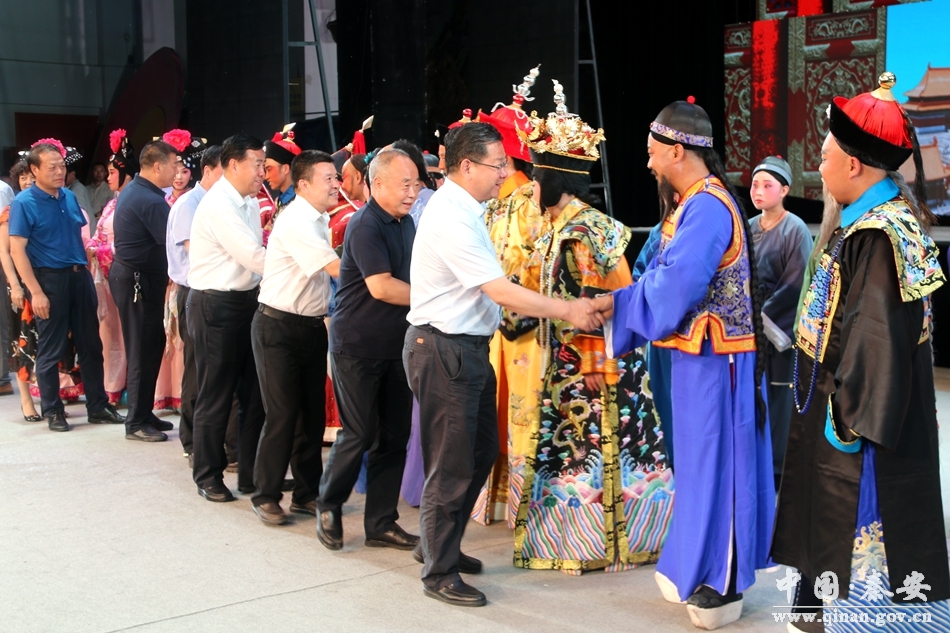 市委常委、宣傳部長(zhǎng)張建杰,市人大常委會(huì)副主任張克強(qiáng),市政府副市長(zhǎng)郝文杰,市政府黨組成員逯克宗,市政協(xié)黨組成員賈忠慧,市政府副秘書(shū)長(zhǎng)、外事僑務(wù)辦主任張有信;秦安縣人大常委會(huì)主任郭海軍,縣政協(xié)主席楊仁義,縣委常委、宣傳部長(zhǎng)徐東明,縣政府副縣長(zhǎng)于劍鋒、張海龍,縣政協(xié)副主席逯虹,以及市縣相關(guān)部門負(fù)責(zé)人和廣大觀眾共500余人觀看了演出。