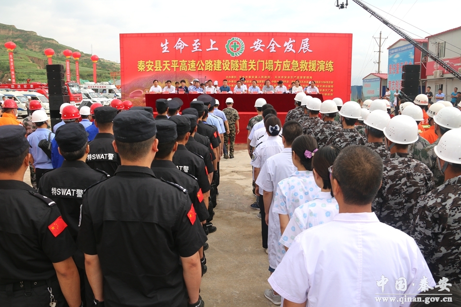 8月3日,秦安縣天平高速公路建設(shè)隧道關(guān)門塌方應(yīng)急救援演練在秦安縣西川鎮(zhèn)神明川隧道進(jìn)口舉行。