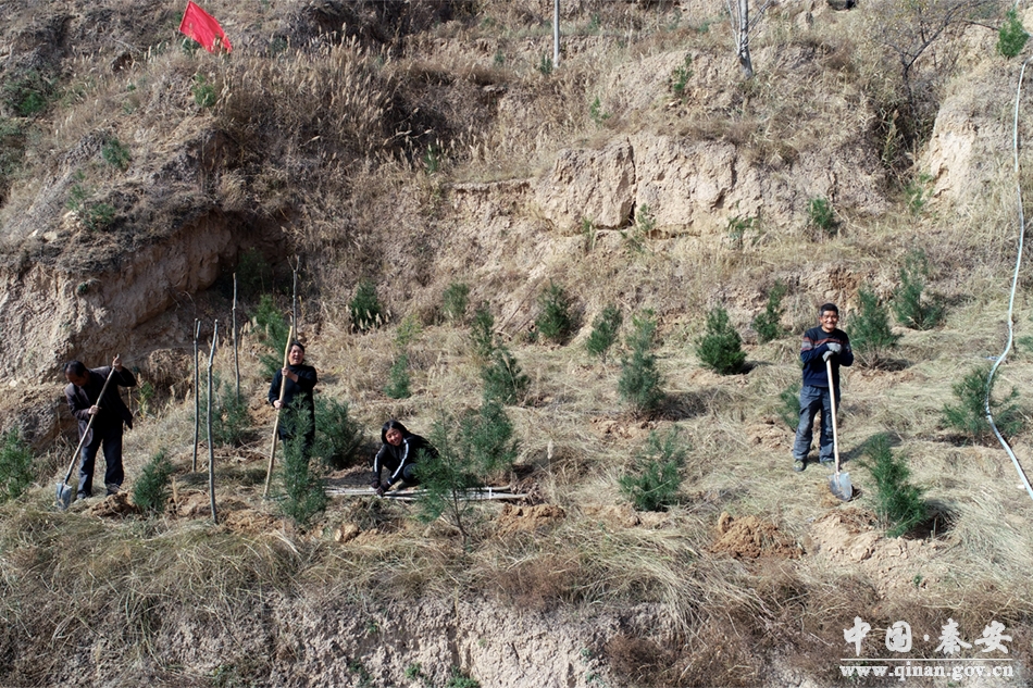 十月天氣好,冬景似春華。日前,秦安縣城區(qū)東西兩山向面坡造林綠化工作全面啟動(dòng)。在興國(guó)鎮(zhèn)廟咀村至何川村、西川鎮(zhèn)下王峽村至宋峽村的兩山綠化區(qū)域,參加植樹(shù)的群眾挖坑、扶苗、培土、圍堰、澆水,一派熱火朝天的景象。