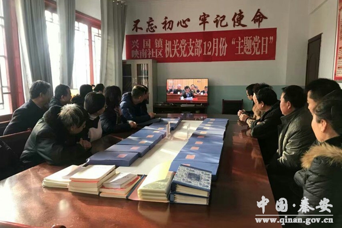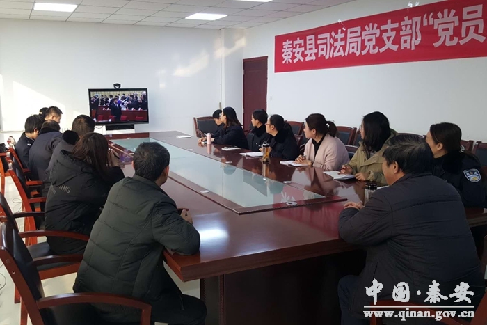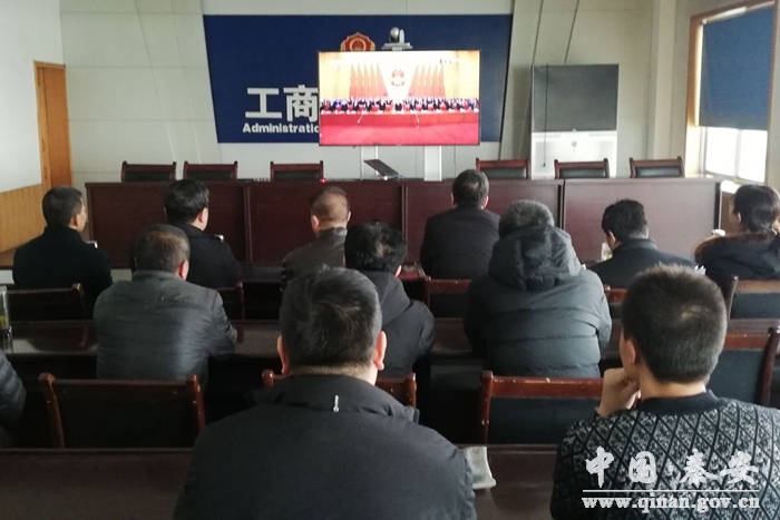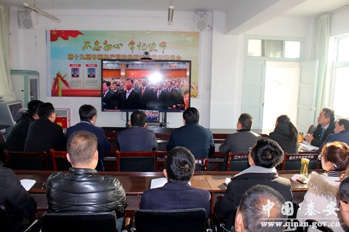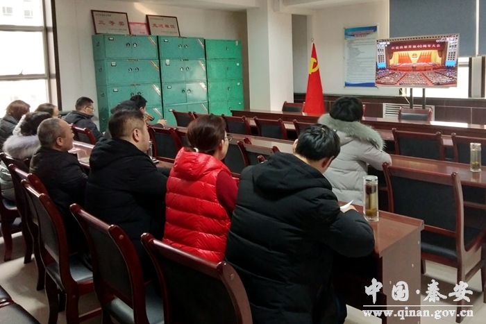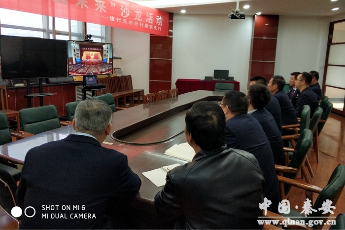 (建行秦安支行組織收看大會實況)