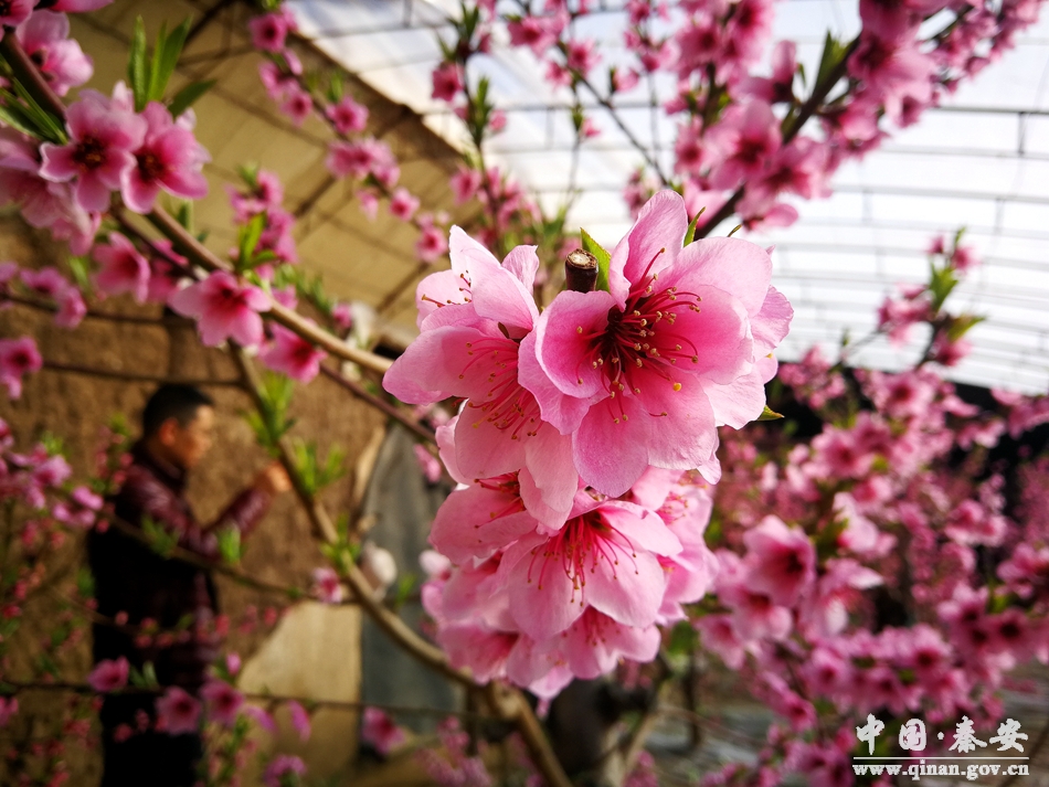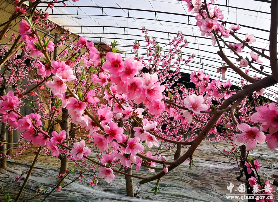 2月4日,天氣依然寒冷?汕匕部h劉坪鎮(zhèn)杜寨村楊根明家的設(shè)施溫室大棚里,卻春意盎然,整齊排列的反季節(jié)桃樹生機(jī)勃勃,新綠蔥蘢;一簇簇桃花灼灼綻放,濃香沁脾。村里的反季節(jié)桃樹已陸續(xù)開花,不僅打好了今年果品豐收的鋪墊,也為新春佳節(jié)平添了一份喜慶色彩。