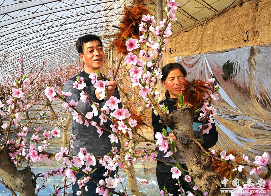 楊根明夫婦在大棚里忙的團(tuán)團(tuán)轉(zhuǎn),正在給一株株桃花涂抹授粉。“今年冬天溫度比較穩(wěn)定,桃花開的整齊,是個(gè)好兆頭。”朵朵盛開的桃花與種植戶楊根明夫婦的笑臉交相映襯,對(duì)他們來說,來年收獲的不僅僅是沉甸甸的果實(shí),還有對(duì)新的一年的期盼和對(duì)美好生活的憧憬。