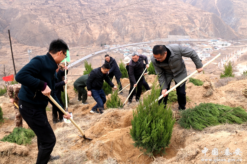 旖旎春光萬(wàn)物新,奮袖植綠鼓干勁。3月10日,在召開(kāi)了秦安縣國(guó)土綠化工作表彰大會(huì)后,郭海軍、程江芬、楊仁義等縣四大組織在家領(lǐng)導(dǎo)帶領(lǐng)縣四大辦及相關(guān)部門、單位負(fù)責(zé)人分組到西川鎮(zhèn)神明川村和興國(guó)鎮(zhèn)廟咀村植樹(shù)造林現(xiàn)場(chǎng),參加了春季義務(wù)植樹(shù)活動(dòng),號(hào)召全縣廣大群眾積極植樹(shù)造林、綠化美化家園。