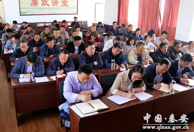為進一步學習貫徹習近平總書記重要講話精神,秦安縣委黨校根據(jù)基層單位對理論宣講的需要,組織教師進機關(guān)、進鎮(zhèn)村、進社區(qū)、進企業(yè)、進學校講黨課。2019年4月25日,秦安縣“巡回黨!彼徒滔锣l(xiāng)活動在千戶鎮(zhèn)啟動。會上,縣委黨校講師賈慧和王冬平分別做了宣講報告。千戶鎮(zhèn)機關(guān)全體干部,各村“兩委”成員60多人參加了學習。