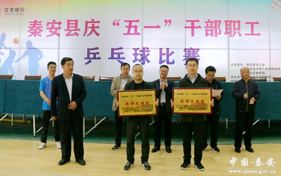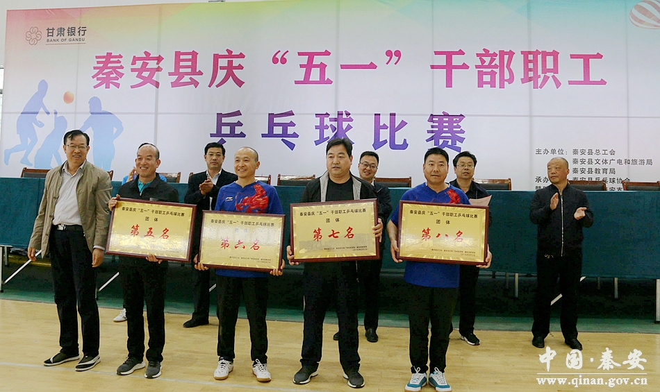 經(jīng)過(guò)3天緊張激烈的角逐,秦安縣“慶五一”干部職工乒乓球比賽圓滿(mǎn)完成所有預(yù)定賽程后,于5月3日上午在秦安縣全民健身中心落下帷幕。