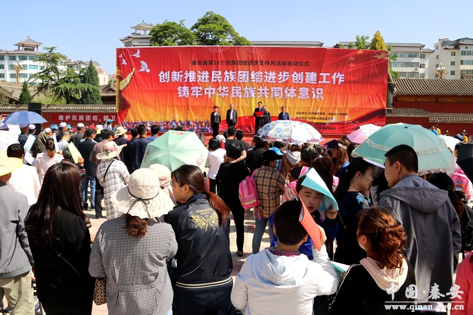 5月22日,秦安縣第16個民族團結進步宣傳月活動啟動儀式在興國文化廣場舉行?h委常委、統(tǒng)戰(zhàn)部長扇忠瑜,縣人大常委會副主任王蓉,縣政府副縣長許祖熙,縣政協(xié)副主席贠耀德,全縣第16個民族團結進步宣傳月活動領導小組成員單位負責人和宣傳干部,興國鎮(zhèn)各社區(qū)、清真寺管委會負責人和群眾代表等參加了啟動儀式。