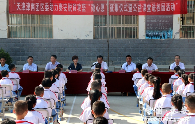 7月10日,天津津南團(tuán)區(qū)委在秦安縣王尹鎮(zhèn)中心小學(xué)舉行了以“滿足孩子小小心愿,助力秦安脫貧攻堅(jiān)”為主題的“微心愿”征集儀式暨公益課堂進(jìn)校園活動(dòng)。