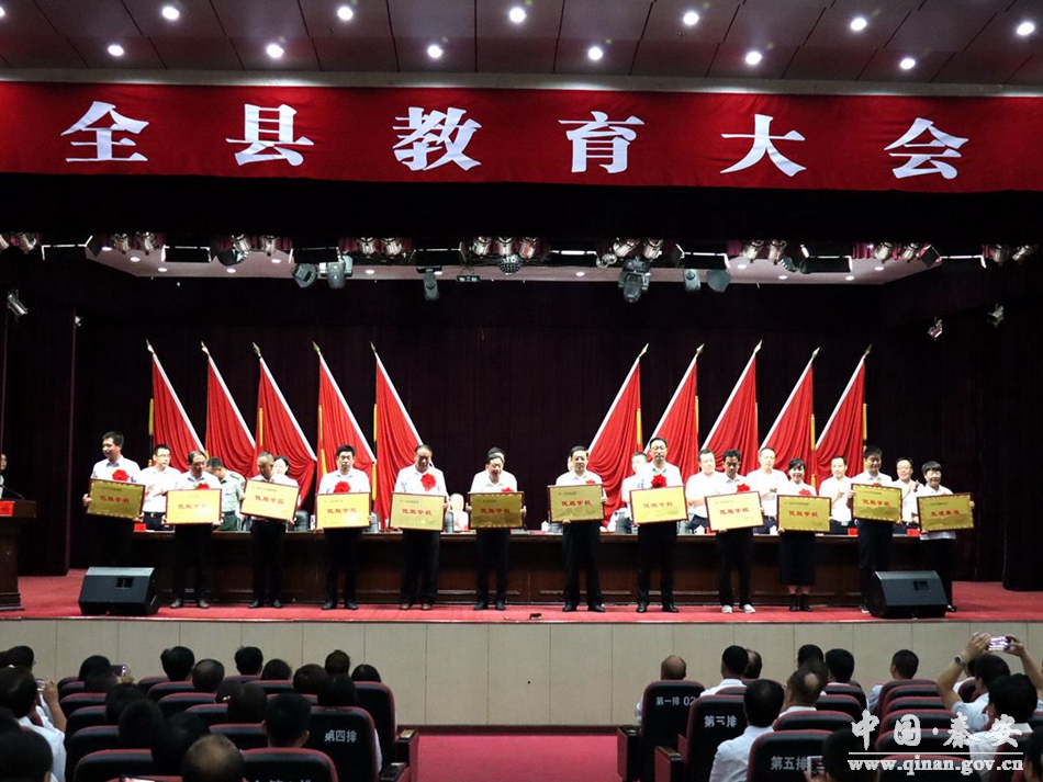 會上,聽取了2018-2019學(xué)年度全縣教育工作報告;宣讀了縣委、縣政府《關(guān)于深化教育改革全面提高教育教學(xué)質(zhì)量的意見》;宣讀了中共秦安縣委辦公室、秦安縣人民政府辦公室《關(guān)于調(diào)整農(nóng)村義務(wù)教育學(xué)校名譽校長的通知》;為教育工作先進集體代表、先進個人代表頒發(fā)了獎牌及榮譽證書;高考先進集體代表、中考先進個人代表、優(yōu)秀班主任代表分別作了交流發(fā)言。