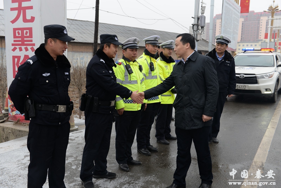 1月15日,受降雪影響,秦安縣發(fā)布道路結(jié)冰黃色預(yù)警。縣委常委、政法委書(shū)記張海龍帶領(lǐng)縣應(yīng)急管理局、公安局交警大隊(duì)負(fù)責(zé)人,先后來(lái)到王鋪梁13公里長(zhǎng)下坡段、葉堡鎮(zhèn)、西部小商品市場(chǎng)、縣汽車(chē)北站等地,開(kāi)展節(jié)前慰問(wèn)并對(duì)道路運(yùn)輸管理及安全生產(chǎn)工作進(jìn)行了檢查。