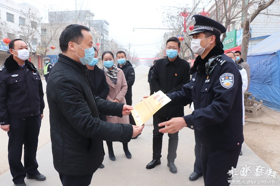 2月13日,秦安縣委常委、政法委書(shū)記張海龍先后來(lái)到蓮花、五營(yíng)、隴城等鎮(zhèn)督查疫情防控工作,并為防疫一線表現(xiàn)突出的公安民警頒發(fā)了獎(jiǎng)牌和嘉獎(jiǎng)令。