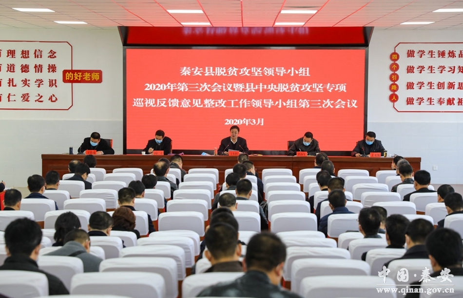 3月3日,秦安縣召開脫貧攻堅領導小組2020年第三次會議暨縣中央脫貧攻堅專項巡視反饋意見整改工作領導小組第三次會議?h委書記、縣脫貧攻堅領導小組組長王東紅主持會議并講話。他強調(diào),要認真貫徹落實習近平總書記在中央統(tǒng)籌推進新冠肺炎疫情防控和經(jīng)濟社會發(fā)展工作部署會議上的重要講話及有關脫貧攻堅工作的重要指示精神,深入分析新冠肺炎疫情,科學研判全縣脫貧攻堅形勢,切實把思想和行動統(tǒng)一到中央決策部署和省市具體安排上來,迎難而上、共克時艱,舉全縣之力打贏脫貧攻堅收官之戰(zhàn),努力與全省全國一道全面建成小康社會。