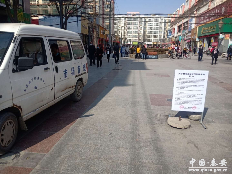 在北壇步行街,為進一步加強步行街秩序管理、維護公共衛(wèi)生管理秩序,根據(jù)縣上關(guān)于加強北壇步行街管理,徹底取締占道經(jīng)營、取締倚門經(jīng)商等相關(guān)規(guī)定,縣城市管理行政執(zhí)法局和我中心聯(lián)合發(fā)出通告,取締北壇步行街區(qū)域內(nèi)所有零散經(jīng)營戶,店鋪全部進店經(jīng)營,堅決取締倚門經(jīng)商,不得占用臺階、人行道設(shè)點加工、銷售,嚴(yán)格落實“門前三包”責(zé)任,保證做到門前無垃圾雜物、無污水、無污垢、無油漬或嚴(yán)重積塵,衛(wèi)生設(shè)施完好整潔,無破損。