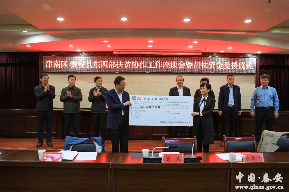 在隨后召開的津南區(qū)秦安縣東西部扶貧協(xié)作工作座談會暨幫扶資金受援儀式上,與會人員觀看了2019年津南區(qū)秦安縣東西部扶貧協(xié)作工作紀(jì)實(shí)片,向貧困學(xué)生代表發(fā)放了“微心愿”包。津南區(qū)向秦安縣交接了財政援助資金5200萬元、鎮(zhèn)級幫扶資金150萬元和津南區(qū)慈善協(xié)會援助資金105萬元。