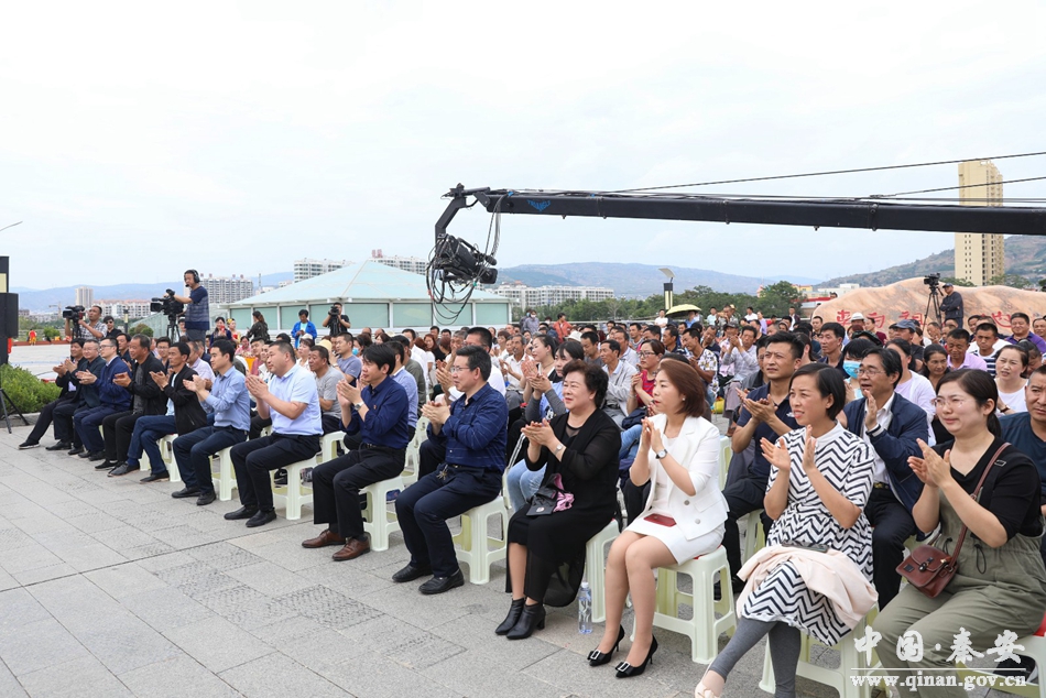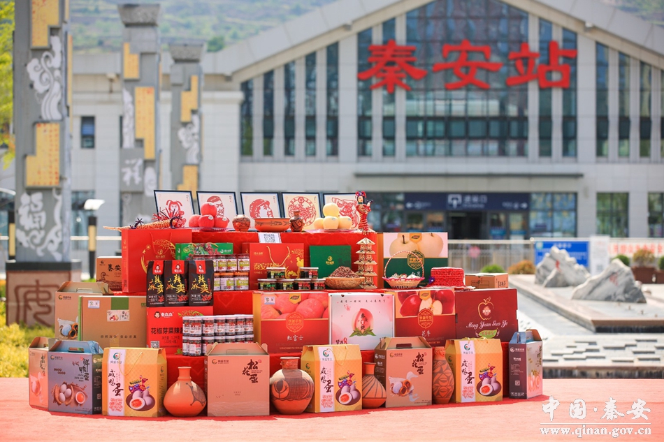活動現(xiàn)場,攝制組的工作人員忙碌著調(diào)試設(shè)備,秦安蘋果、花椒、剪紙、彩陶等特產(chǎn)也悉數(shù)陳列在了現(xiàn)場。臺下座無虛席,觀眾們也在滿心期待著節(jié)目的開始。