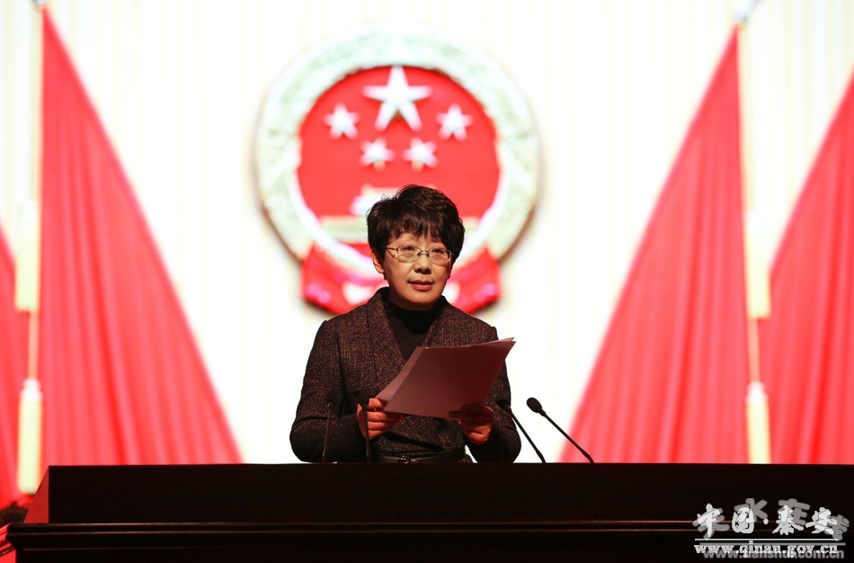 在熱烈的掌聲中,秦安縣人民政府縣長程江芬代表縣政府向大會作了《政府工作報(bào)告》。