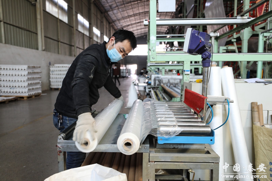 在甘肅福雨塑業(yè)有限責任公司,記者看到,車間內全自動生產線滿負荷運轉,在多臺機械設備的自動化操作下,一塊塊塑料篷布被送上了不停運轉的履帶,工人們則開始對篷布進行分割、包裝等工序,一派繁忙的生產景象。
