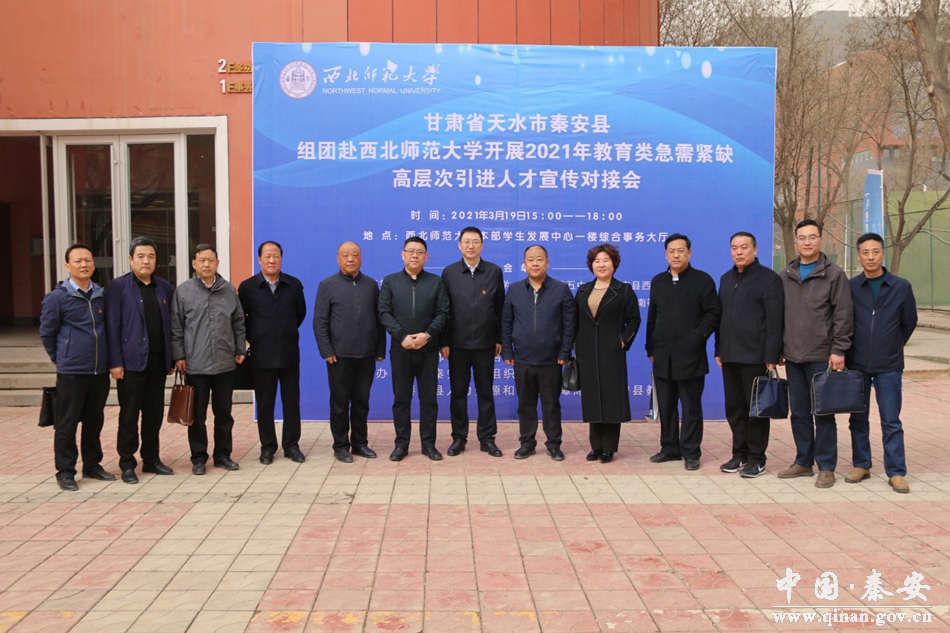許祖熙代表縣委、縣政府對西北師范大學的大力支持表示感謝。他說,秦安文化底蘊深厚,旅游資源豐富,是華夏文明的重要發(fā)祥地之一,素有“羲里媧鄉(xiāng)”之稱。近年來,秦安縣把人才強縣戰(zhàn)略作為促進縣域經(jīng)濟社會發(fā)展的重要舉措,不斷健全完善人才引進機制,緊扣縣域發(fā)展需求引才聚才,優(yōu)化創(chuàng)業(yè)環(huán)境用才留才,人才的創(chuàng)造活力和創(chuàng)業(yè)熱情明顯提升,為推動全縣經(jīng)濟社會持續(xù)健康發(fā)展提供了強有力的人才保障和智力支撐。秦安縣委、縣政府高度重視此次人才引進工作,把引進100名急需緊缺人才列入2021年縣政府為民十件實事。希望通過這次宣傳對接,能在原來的基礎(chǔ)上進一步加強校地合作,在人才培養(yǎng)與交流、產(chǎn)學研合作、創(chuàng)新創(chuàng)業(yè)平臺建設(shè)等方面開展全方位、多領(lǐng)域、深層次的合作,實現(xiàn)校地雙方互利共贏、協(xié)同發(fā)展。