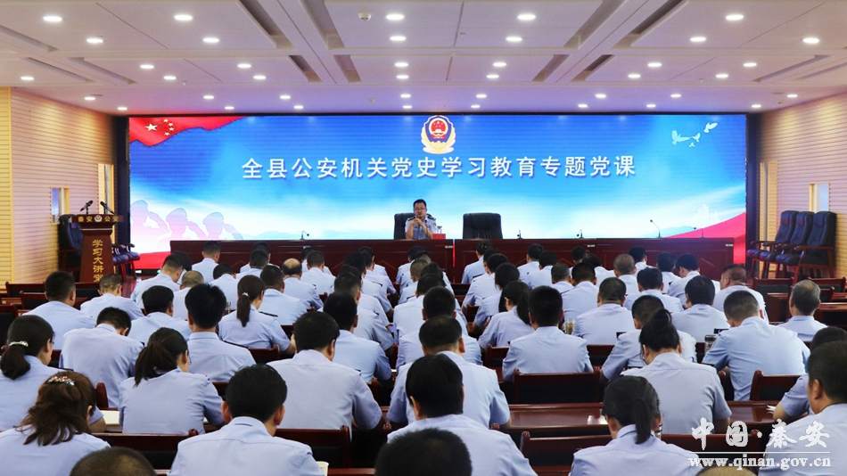 根據(jù)縣委黨史學(xué)習(xí)教育領(lǐng)導(dǎo)小組的統(tǒng)一安排,為深入推進(jìn)縣公安局黨史學(xué)習(xí)教育,6月30日下午,秦安縣政府副縣長、公安局黨委書記、局長薛天勝為公安局黨員民輔警講授黨史專題黨課。在家局黨委班子成員,機(jī)關(guān)、城區(qū)四所除值班備勤人員外100余名黨員民輔警現(xiàn)場參加黨課學(xué)習(xí)。