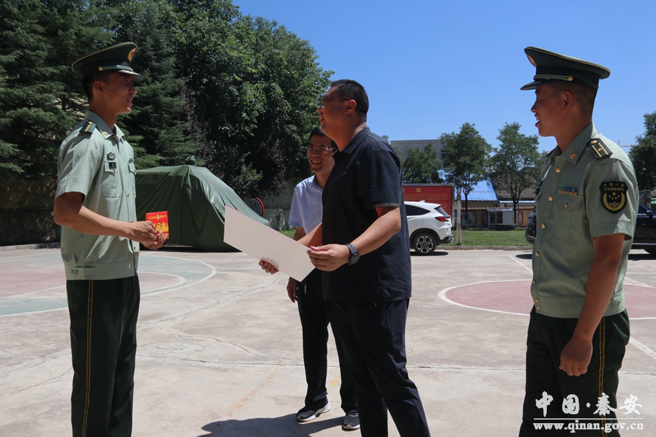 7月30日,在八一建軍節(jié)即將到來之際,秦安縣委副書記、縣長候選人王龍強來到秦安縣武警中隊走訪慰問,向部隊官兵致以節(jié)日的問候和真摯的祝福。