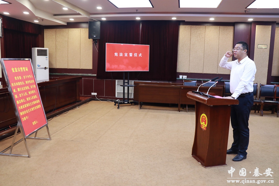 秦安縣人大常委會(huì)主任李寬余為縣人民政府代理縣長王龍強(qiáng)頒發(fā)了任命書,并舉行了憲法宣誓儀式。