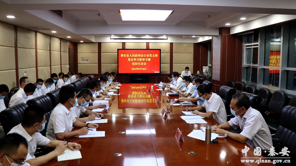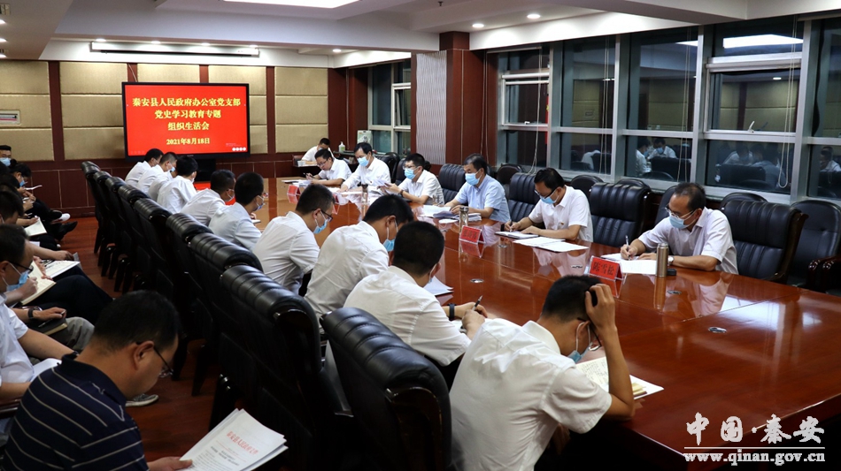 8月18日,秦安縣政府辦公室黨支部召開黨史學(xué)習(xí)教育專題組織生活會(huì)?h政府黨組成員、副縣長(zhǎng)張國(guó)正、張濤濤、楊成、陳雪松分別以普通黨員身份參加會(huì)議?h委黨史學(xué)習(xí)教育第六巡回指導(dǎo)組組長(zhǎng)任明到會(huì)指導(dǎo)并作點(diǎn)評(píng)。