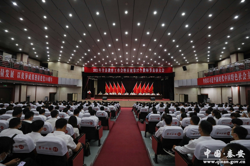 9月10日,2021年秦安縣教育工作會暨慶祝第37個教師節(jié)表彰大會召開。會議深入學習貫徹習近平總書記“七一”重要講話精神和關于教育工作的重要論述,總結全縣教育事業(yè)取得的成績,表彰獎勵全縣教育戰(zhàn)線上涌現出的先進集體和先進個人,部署當前和今后一個時期全縣教育工作,進一步形成全縣上下尊師重教的良好風尚,積極推動秦安教育事業(yè)高質量發(fā)展。