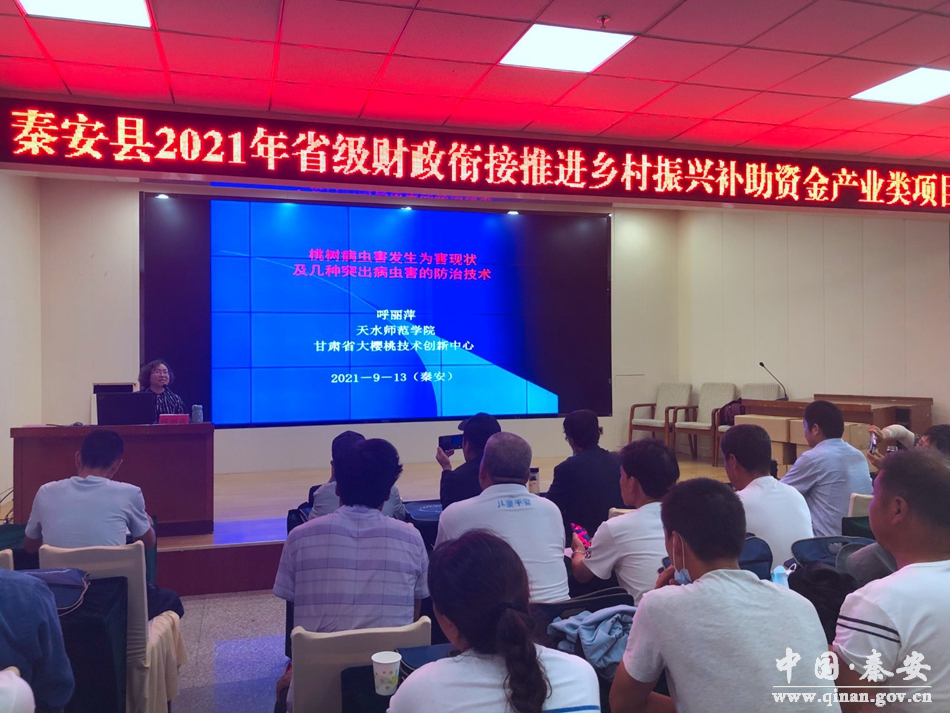 開班儀式上,縣委副書記曹晶瑜說,今年是鞏固脫貧攻堅(jiān)成果和銜接推進(jìn)鄉(xiāng)村振興的開局之年,發(fā)展產(chǎn)業(yè)促進(jìn)農(nóng)民增收是縣委縣政府的重點(diǎn)工作。借助秦安縣果品產(chǎn)業(yè)提質(zhì)增效桃新品種引進(jìn)與推廣項(xiàng)目,加強(qiáng)與科研院所及大學(xué)院校的的合作,針對秦安縣旱地桃栽培環(huán)境和優(yōu)質(zhì)、多樣化發(fā)展需求,引進(jìn)甘肅省農(nóng)科院林果花卉研究所研發(fā)的普通桃、油桃、蟠桃等不同類型的早、中、晚熟新品種(系);建立新品種試驗(yàn)示范園,從品質(zhì)、抗性、市場需求等方面進(jìn)行評價(jià),篩選出適宜發(fā)展的優(yōu)良品種。堅(jiān)持綠色優(yōu)質(zhì)發(fā)展方向,應(yīng)用病害綠色防控的最新研究結(jié)果和理念,確定綜合防控技術(shù)方案,生產(chǎn)綠色優(yōu)質(zhì)、安全營養(yǎng)的果品。努力將科技成果轉(zhuǎn)化為產(chǎn)業(yè)發(fā)展優(yōu)勢,推動桃優(yōu)良品種及生產(chǎn)新技術(shù)的普遍推廣與應(yīng)用,鞏固和提升秦安桃產(chǎn)業(yè)在全國的影響力,增強(qiáng)秦安蜜桃從業(yè)者的榮譽(yù)感和自豪感。