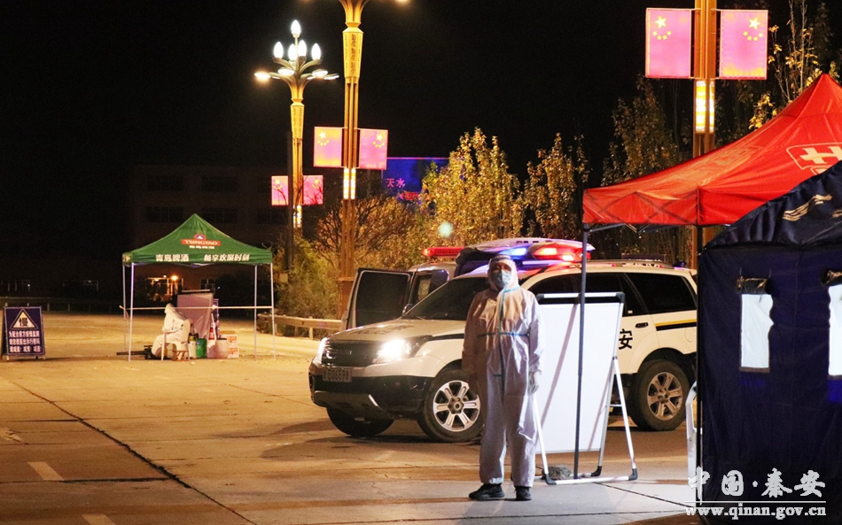 在深秋黑夜的嚴(yán)寒中,疫情一線執(zhí)勤的民輔警徹夜堅守,對進(jìn)出車輛、人員進(jìn)行逐一檢查、測量體溫,做好登記,一遍遍的舉手示意讓車輛停靠,一聲聲叮囑車輛小心慢行,讓寒冷的夜晚變得溫暖。