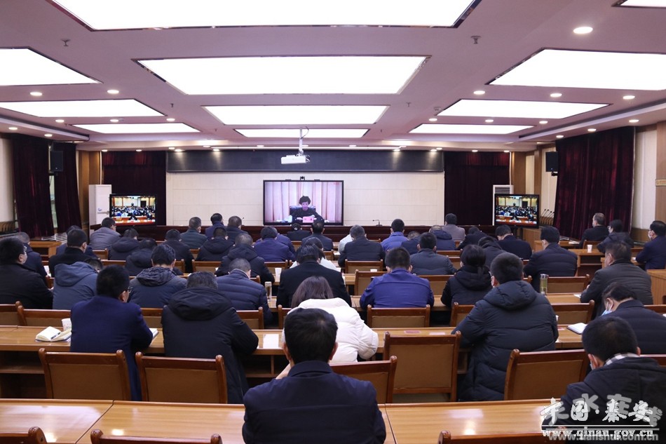 秦安縣領(lǐng)導(dǎo)常樂、張濤濤及各鎮(zhèn)、相關(guān)部門負(fù)責(zé)人在秦安分會場收聽收看會議。