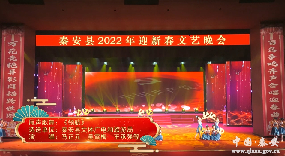 在秦安縣2022年迎新春文藝晚會(huì)上,全體演員共同唱響歌曲《領(lǐng)航》。大家用飛揚(yáng)的歌聲、飽滿的激情,迎接新年到來,表達(dá)“永遠(yuǎn)跟黨走 奮進(jìn)新時(shí)代”的共同心聲。