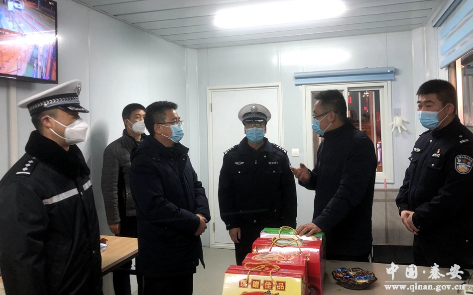 親切關懷,情暖警心。1月31日除夕夜和2月1日大年初一,秦安縣政府副縣長、縣公安局黨委書記、局長薛天勝帶隊先后到秦安縣高鐵站、310國道口、天平高速秦安出站口疫情防控點、“110”指揮中心、交警大隊、特巡警大隊、看守所及城區(qū)派出所,走訪慰問堅守崗位的一線公安民輔警,督導檢查安全生產(chǎn)工作。薛天勝說,要切實擔負起公安機關的職責使命,全力以赴做好春節(jié)期間各項安保維穩(wěn)、疫情防控等工作,確保人民群眾過一個安定祥和的新春佳節(jié)。薛天勝代表公安局黨委向奮戰(zhàn)在工作一線的全體民輔警送去了新年的慰問和祝福,并為他們送上了慰問金和慰問品。