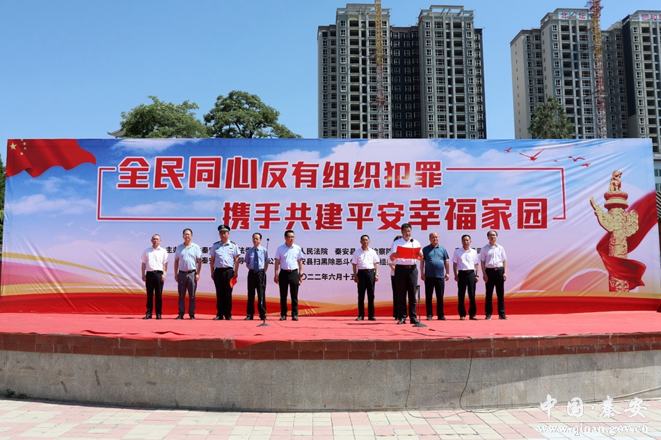 為認真貫徹中央和省市部署要求,進一步把學(xué)習(xí)宣傳貫徹《反有組織犯罪法》引向深入,充分發(fā)動群眾,繼續(xù)保持對黑惡霸痞勢力的嚴打高壓態(tài)勢,推動常態(tài)化掃黑除惡斗爭走深走實。6月15日,秦安縣在興國文化廣場舉行了《反有組織犯罪法》主題宣傳活動暨新一輪社會治安清查行動啟動儀式?h委常委、政法委書記龐勝前主持儀式并宣布此次活動啟動,縣人大常委會副主任孫旺奎,縣政府副縣長、縣公安局局長薛天勝,縣政協(xié)副主席逯銀霞,縣檢察院檢察長張春強參加啟動儀式。