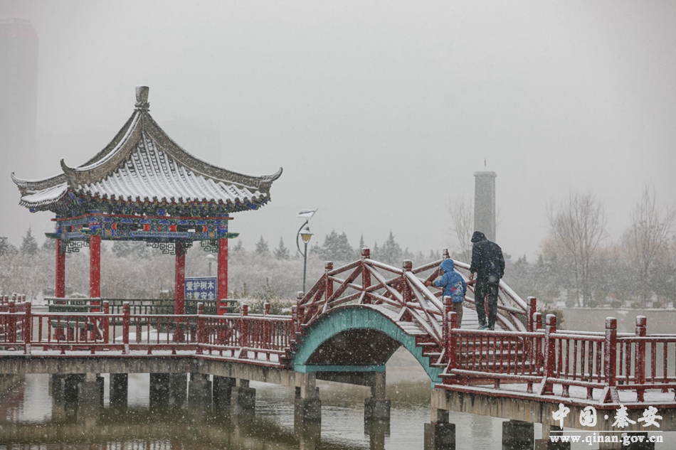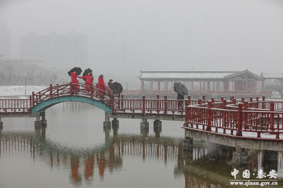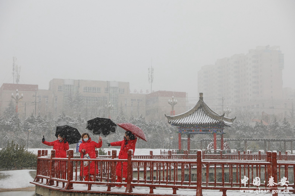 2月7日夜間,秦安縣迎來了兔年的第一場雪。2月8日一大早,路面上、房頂上、樹枝上都落滿了積雪, 潔白的雪花漫天飛舞,飄飄灑灑裝點了這座縣城,目之所及,銀裝素裹,皆是風(fēng)景,不禁令人產(chǎn)生瑞雪兆豐年的美好憧憬。