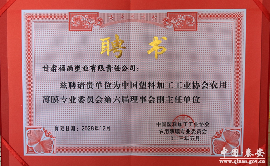 近日,在中國(guó)塑協(xié)農(nóng)膜專委會(huì)2023年年會(huì)暨換屆大會(huì)上,甘肅福雨塑業(yè)有限責(zé)任公司被聘請(qǐng)為中國(guó)塑料加工工業(yè)協(xié)會(huì)農(nóng)用薄膜專業(yè)委員會(huì)第六屆理事會(huì)副主任單位,并榮獲“在線打孔專用耐候地膜”優(yōu)秀科技成果獎(jiǎng)、“海寶牌”中國(guó)農(nóng)膜質(zhì)量信得過優(yōu)秀品牌獎(jiǎng)、“綠色低碳科學(xué)應(yīng)用多層地膜”中國(guó)農(nóng)膜行業(yè)升級(jí)產(chǎn)品獎(jiǎng)、“復(fù)合型高強(qiáng)度環(huán)保黑白配色地膜”中國(guó)農(nóng)膜行業(yè)創(chuàng)新產(chǎn)品獎(jiǎng)、中國(guó)農(nóng)膜行業(yè)科技創(chuàng)新先進(jìn)工作者獎(jiǎng)等多項(xiàng)殊榮。