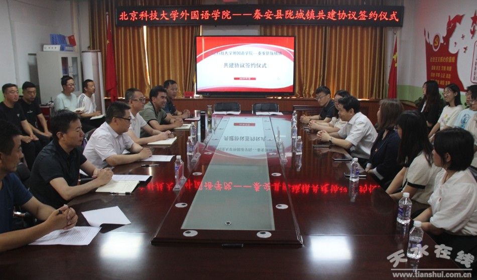 7月7日,北京科技大學(xué)外國語學(xué)院--秦安縣隴城鎮(zhèn)共建協(xié)議簽約儀式在秦安縣隴城教育園區(qū)舉行。北京科技大學(xué)外國語學(xué)院黨委書記沈崴,北京科技大學(xué)外國語學(xué)院黨委副書記、副院長李靜,北京科技大學(xué)外國語學(xué)院黨委秘書王春麗,秦安縣人民政府黨組成員、副縣長景鵬參加儀式。